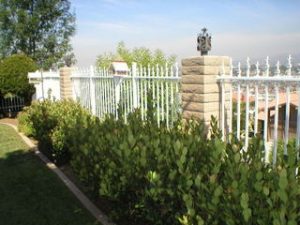 Fences provide separation between properties, and give either privacy or openness depending on what is needed. For example, openness may be needed because of either a pool or a nice view. Pool or sprinkler water and the humidity in our area makes steel rust and rot, so for openness the best solution is aluminum or vinyl. Steel fencing is often referred to as rot-iron and that is a misnomer since rot iron does not rust but mild steel defiantly does. Aluminum fencing has the same small profile as steel while vinyl will have bigger members or profiles. Both aluminum and vinyl are good materials around pools since they do not rot or need painting even when exposed to lots of water. Dark colors are not available in vinyl.